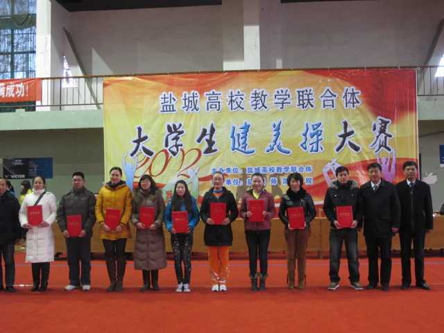 在刚刚结束的由盐城市高校教学联合体举办的“盐城市高校教学联合体大学生健美操大赛”中,我院代表队以良好的竞技状态和充满活力、富有激情的动作,荣获规定动作一等奖;自编套路三等奖;彭梓航同学荣获优秀运动员;体育部郭红艳老师荣获优秀教练员!