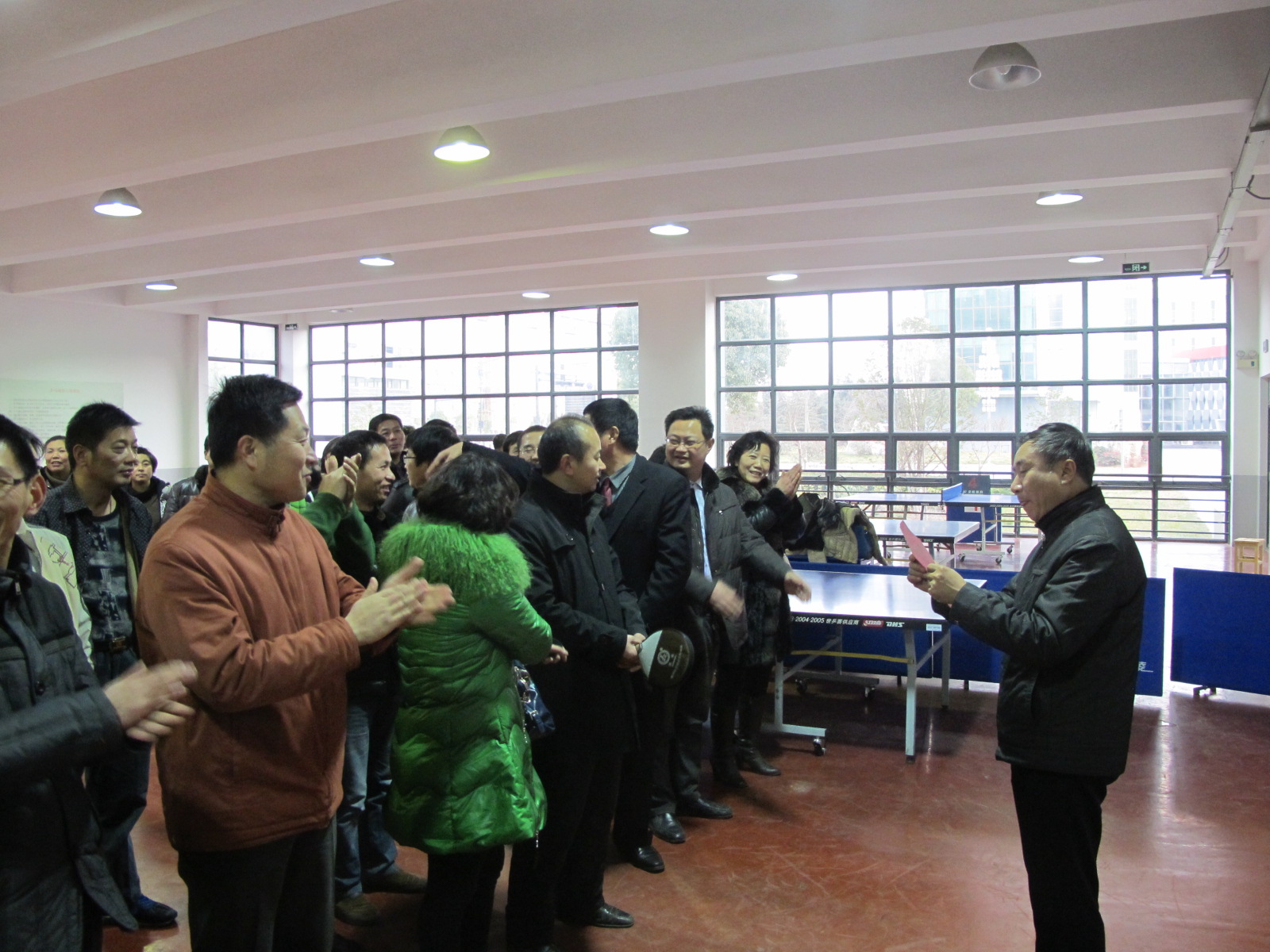 12月26日下午4时,我校体育中心乒乓球馆内,教职工乒乓球协会成立大会顺利举行。会议由校工会主席杨怀罕主持,参与成立大会开幕式的有校各分工会的主席及运动员代表等,会议伊始,校工会主席杨怀罕宣读《关于成立“盐工院教职工乒乓球协会”的通知》,并介绍协会组成人员名单,荣誉会长由刘必千副院长担任。杨主席强调“经过多年的努力,在校工会等有关部门的大力支持下,我们教职工乒乓球协会终于成立,希望我们广大教工始终都要有一颗爱‘乒’的心,不管是在教学还是在生活中,爱‘乒’才会赢,协会的成立的目的就是为喜欢乒乓球的教职工们提供一个球艺交流的平台,感情的交流的平台,锻炼身体的平台。”