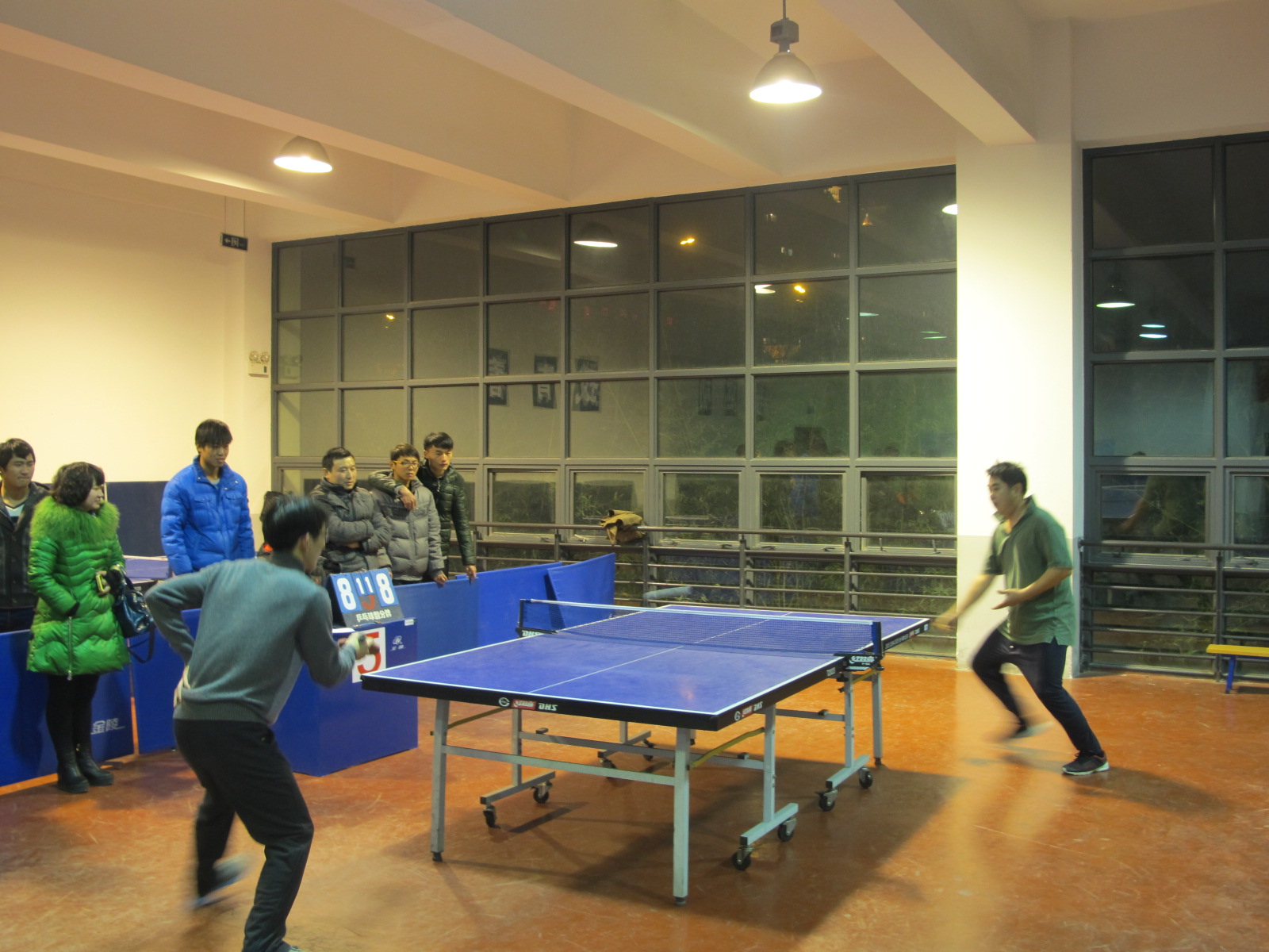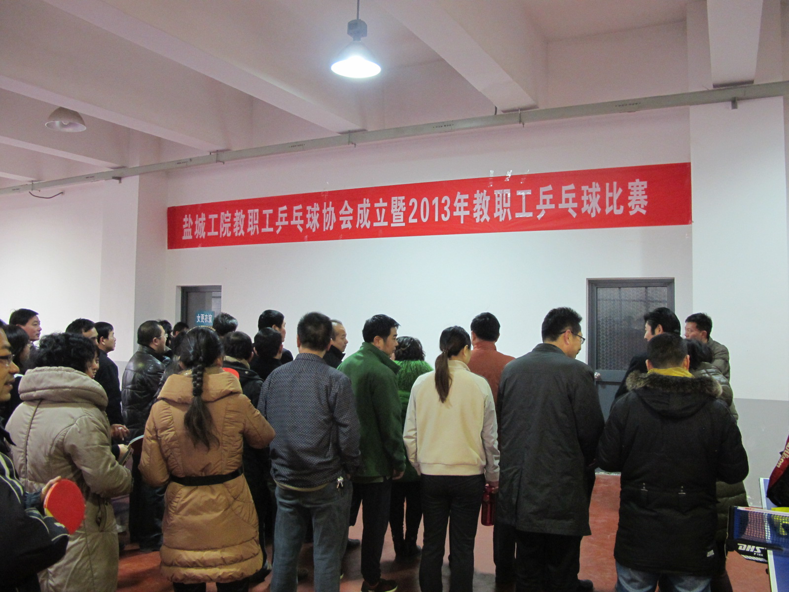乒协成立大会结束后,由院工会和院体育部主办的“盐工院2013年教职工乒乓球比赛” 拉开了大幕。比赛分为团体、男子单打、和女子单打。经过两天的激烈争夺,教研代表队、艺术分工会代表队荣获团体冠亚军;机关分工会代表队和后勤分工会代表队获并列第三名;获得男子单打前三名的是:沈龙标、刘沭丰、陈宏武;获得女子单打前三名的是:姚桂香、杜丽华、周旭芳、吕志莹。